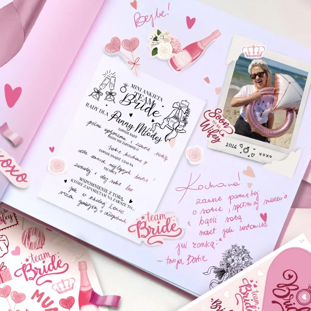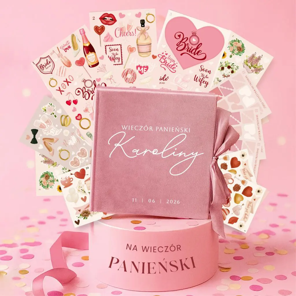 Welurowa księga gości na WIECZÓR PANIEŃSKI + zestaw naklejek BRIDE
