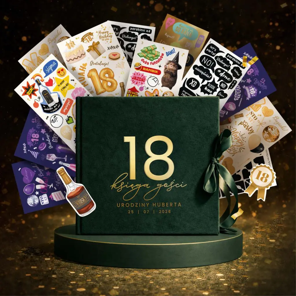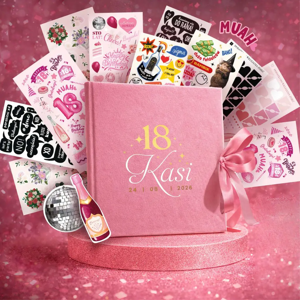 Welurowa księga pamiątkowa na 18 URODZINY + naklejki