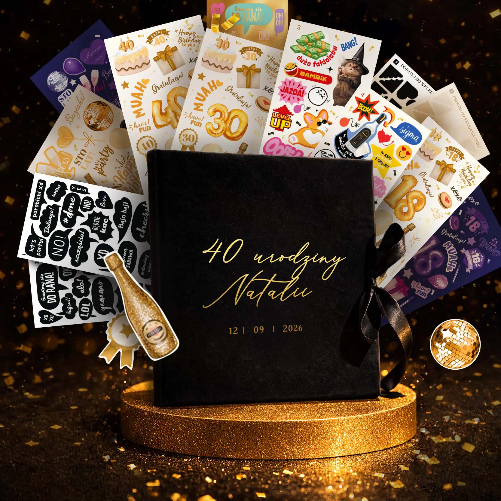 Naklejki do księgi gości na urodziny GOLD