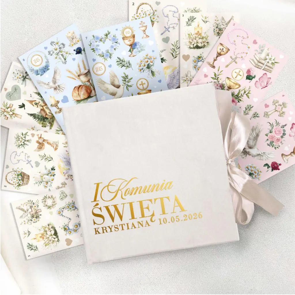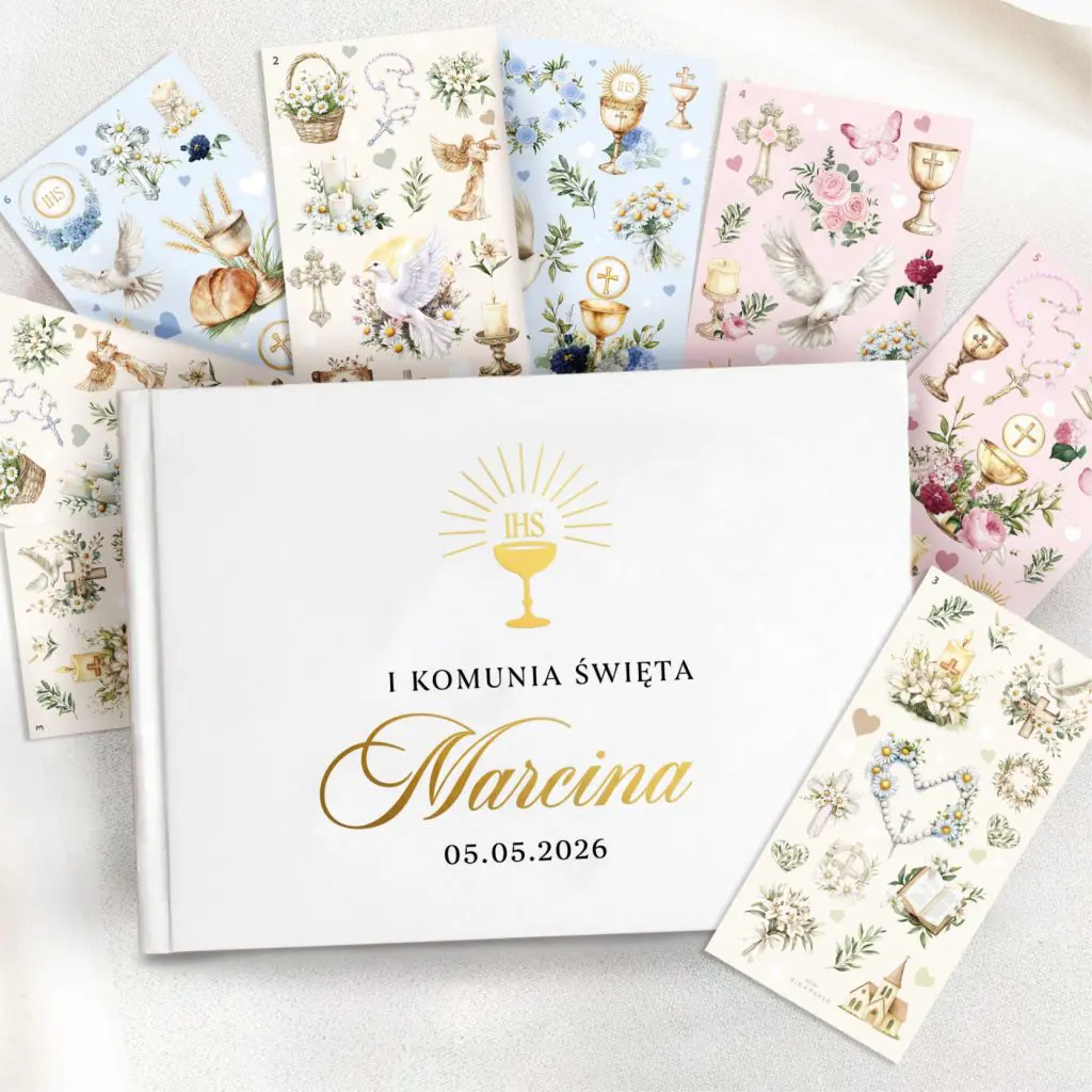 Księga gości NA KOMUNIĘ + zestaw naklejek