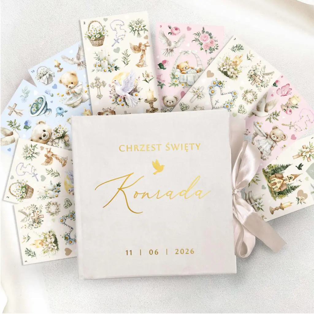 Księga gości NA CHRZEST + zestaw naklejek