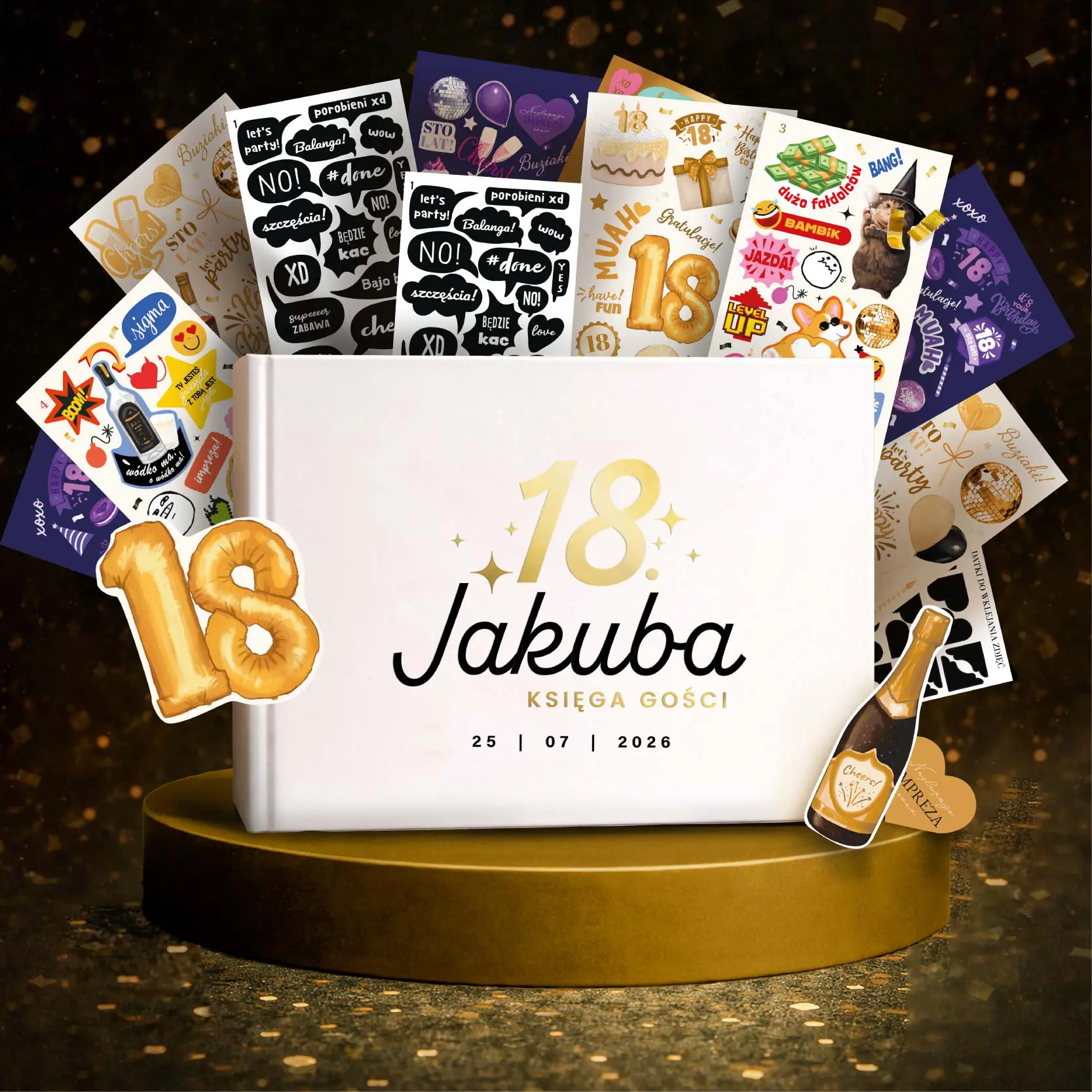 Naklejki do księgi gości na 18 urodziny GOLD