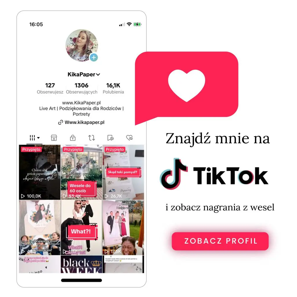 Jesteśmy małżeństwem, które wspólnie tworzy dla Was miejsce w internecie łącząc kreatywność i jakość. Nasza historia zaczęła się na www.kikapaper.pl, gdzie malujemy podziękowania dla Rodziców, dla Świadków oraz inne okolicznościowe portrety na prezent. Jesteśmy także znani z atrakcji weselnej Live Art – gdzie malujemy gości na weselach.