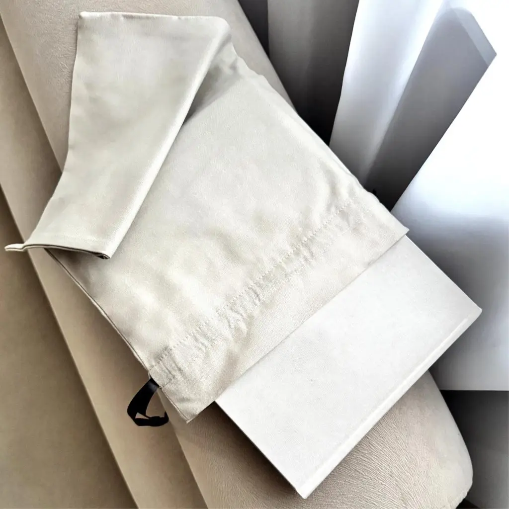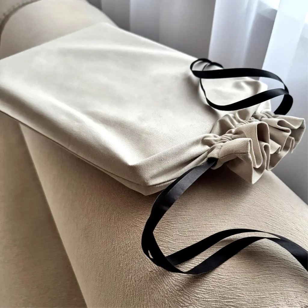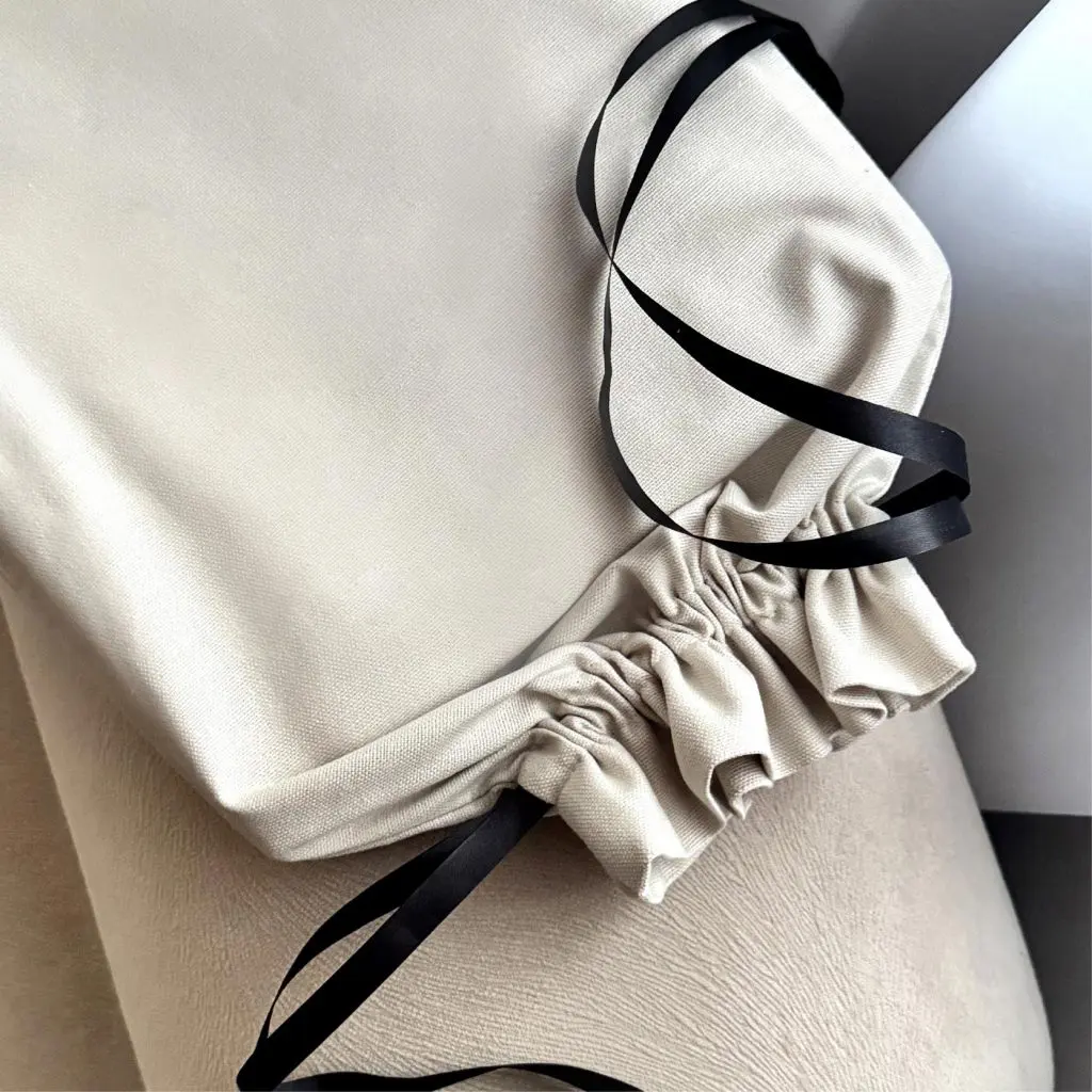 Woreczek wykonany jest z naturalnego płótna w beżowym, jasnym odcieniu. Dostępny w jednym rozmiarze z wygodnym ściagaczem. Woreczek pasuje do płóciennej księgi jak i również do klasycznej, białej księgi gości.